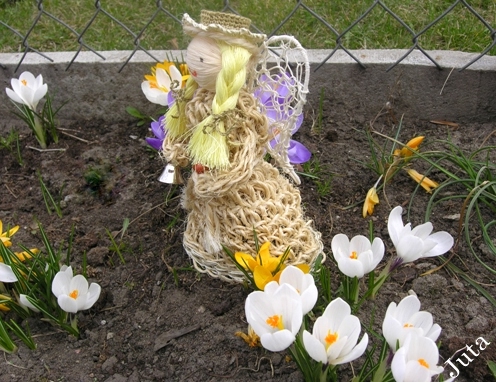 Oto Melania. Zrobiłam ją ze sznurka bawełnianego.Koszyczek ze sznurka jutowego.Dekoracje i pisanki wykonałam ze sznurka lnianego.